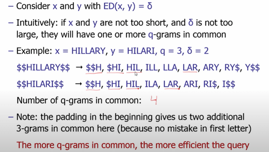q-gram index is useful in fuzzy search which can be illustrated by the following example.