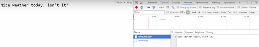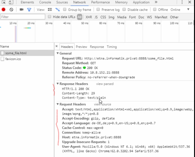 So if enter somefile on the url, same as telnet communication to ask the server, we can see from the developer console window, network tab as