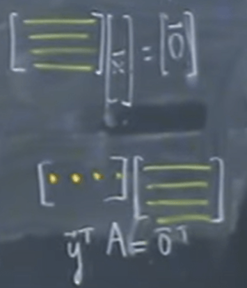 column operation put the vector x on the right side, so each row times the column, it is extended from the original elementary equations, so linear composition of x[] + y[] +… (seems confusing here); row operation puts row vector on the left side.