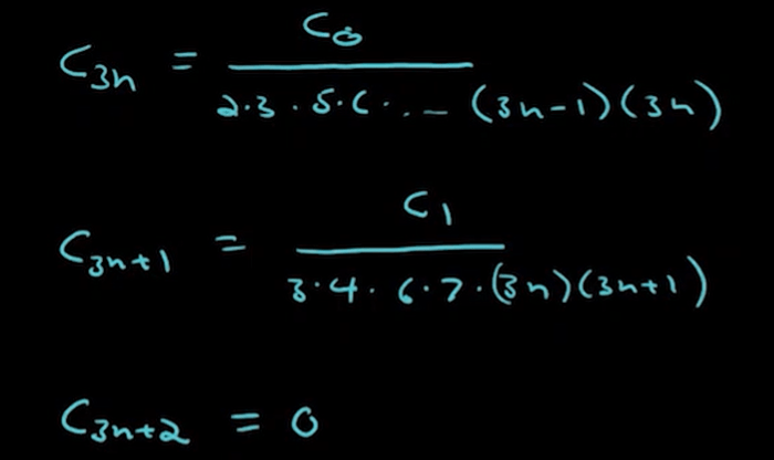 A more difficult example on applying infinite series to solve Airy’s Equation y”-xy=0.