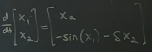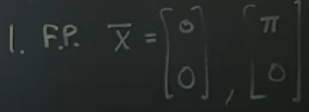 so with x1 = 0, and delta given, we can calculate the eigen values, if it’s less than zero, like the pendulum is downward at the bottom, the lambda values are both negative, hence stable, the other scenario, we have one negative, stable, the other positive, non stable.