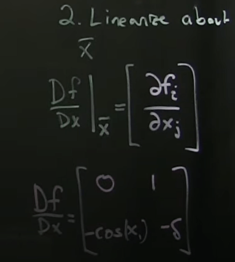 We can then linearize about it by taking Jacobean or derivative matrix