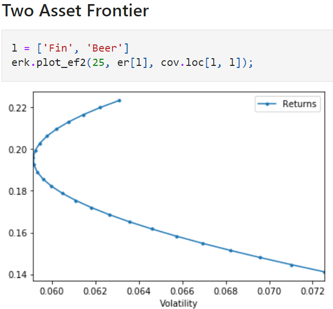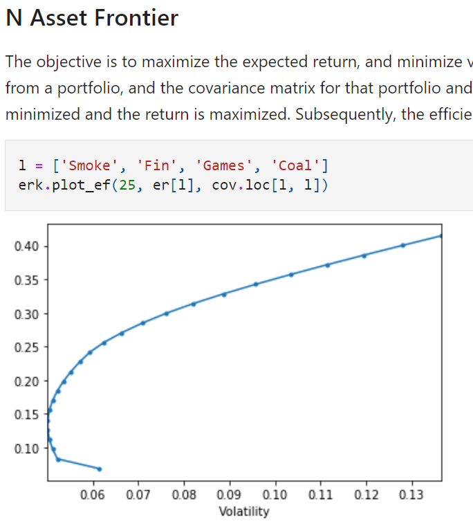 Here are the full codes from Vijay github for full reference purpose. With regard to this min-vol strategy, the key components are portfolio_return, portfolio_vol, minimize_vol, andmsr (Returns the weights of the portfolio that gives you the maximum sharpe ratio given the riskfree rate and expected returns and a covariance matrix).