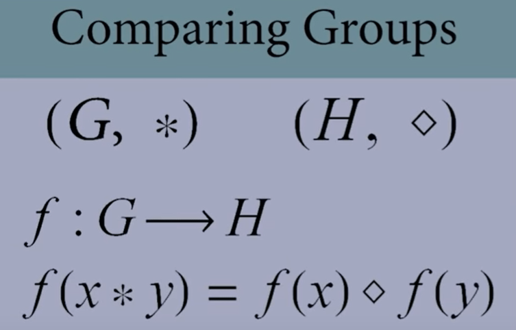 Next big topic, how do mathematician compare two groups, measure up how similar they are. They use homomorphism. First, compare these two groups see how strikingly similar they are to each other: