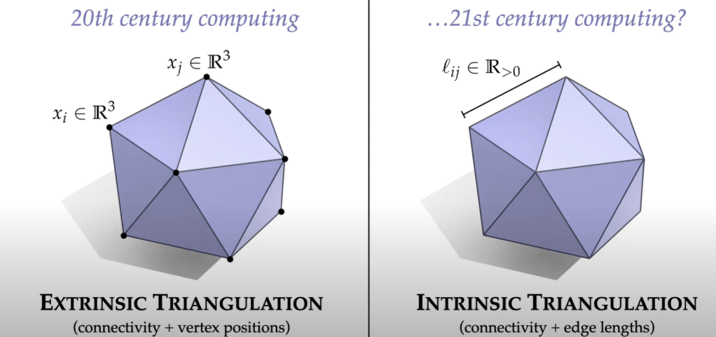 Then in 21st century, extrinsic triangulation is replaced by intrinsic triangulation – connectivity edge lengths instead of vertex positions.