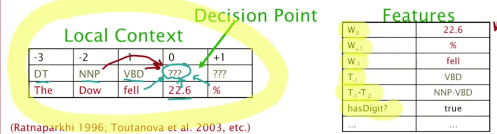Relative to Information Extraction, there is another concept – Relation Extraction. That’s how this model’s name is from. Now let’s see some examples with overlapping features. Maxent model Handles overlapping features well but not on model feature interactions.