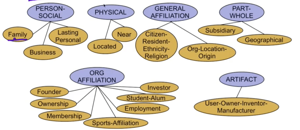 Supervised ML to extract relations. Entity based features, word based and syntax sequence features. there are semi-supervised or unsupervised relation extraction.