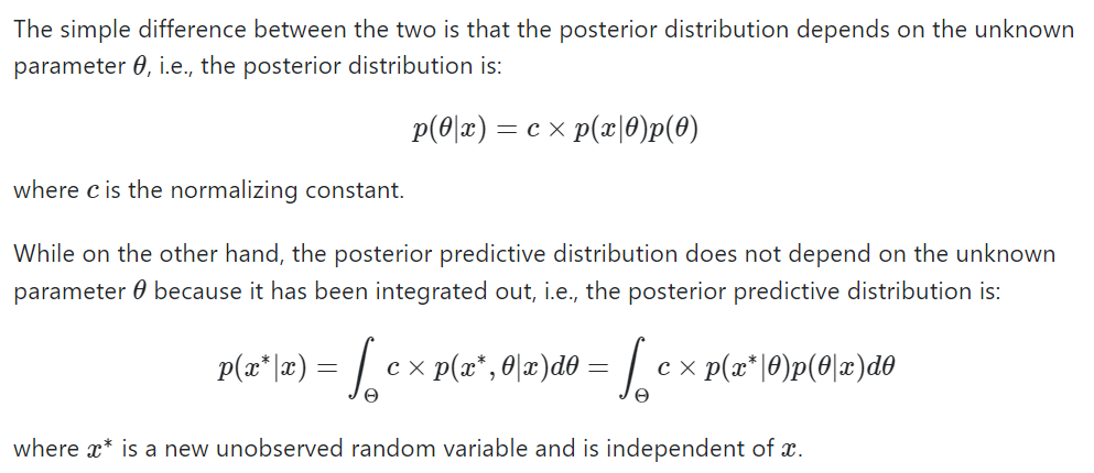 So first, what is the difference between posterior distribution and posterior predictive distribution? The following citation from stackexchange is the best answer: