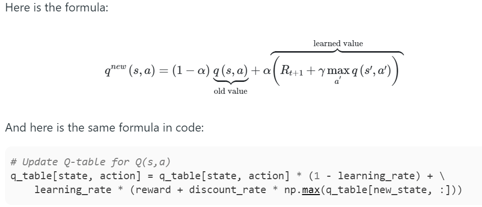 learning_rate * (reward + discount_rate * np.max(q_table[new_state, :]))