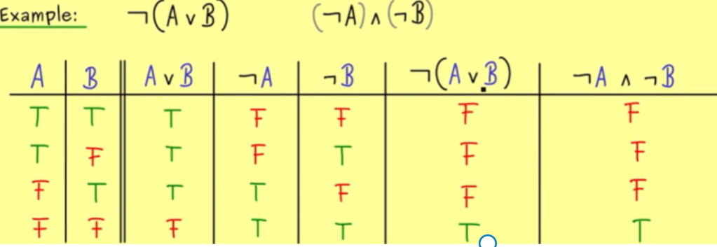 If the truth table (all possible assignment of truth values for the logical valuables) are the same we call the two logical statements logical equivalent. For example
