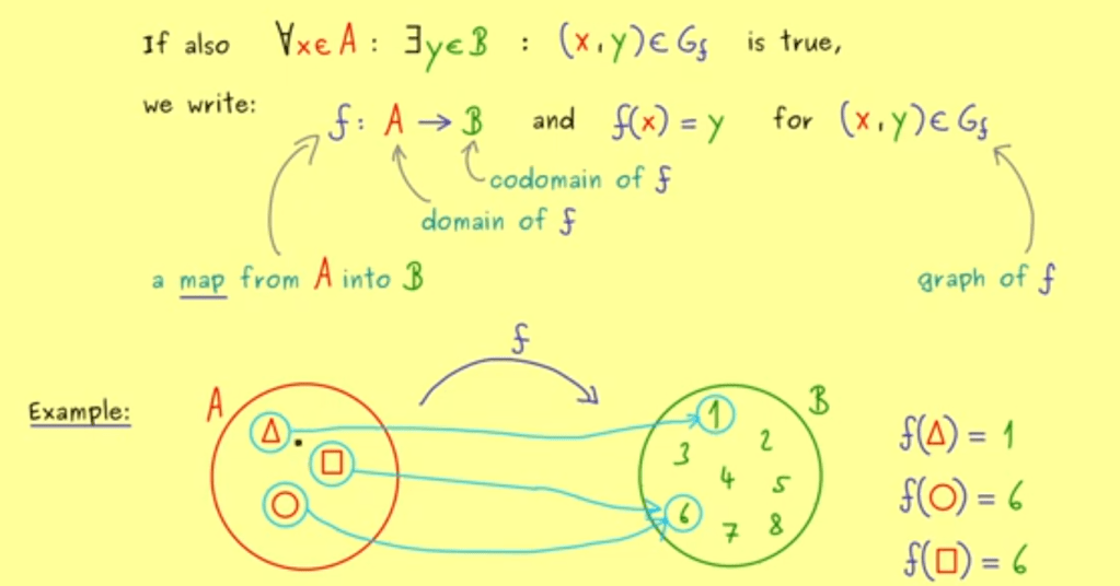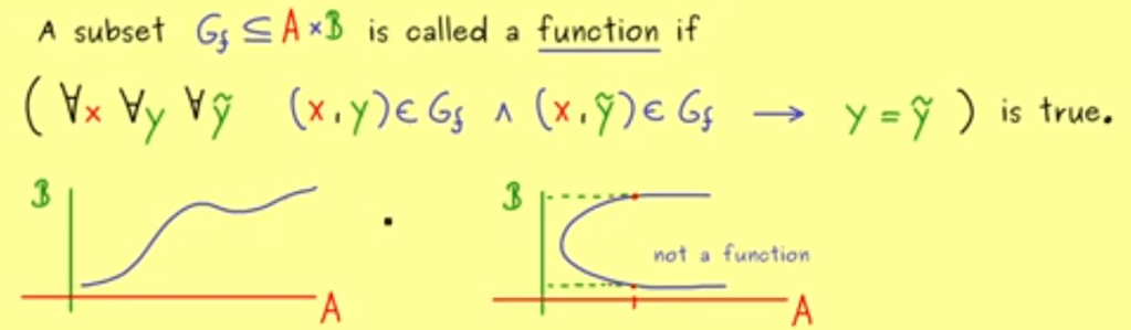 Functions f: A -> B are sets with elements {x. {x, y}} where every element in A is associated with exactly one element in B.