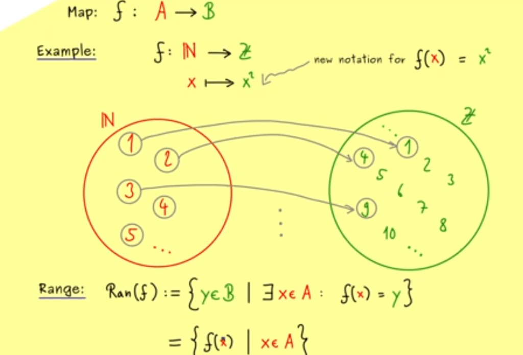 for example the map from Natural number set to Integral number set Z, we can define range(f) as below: