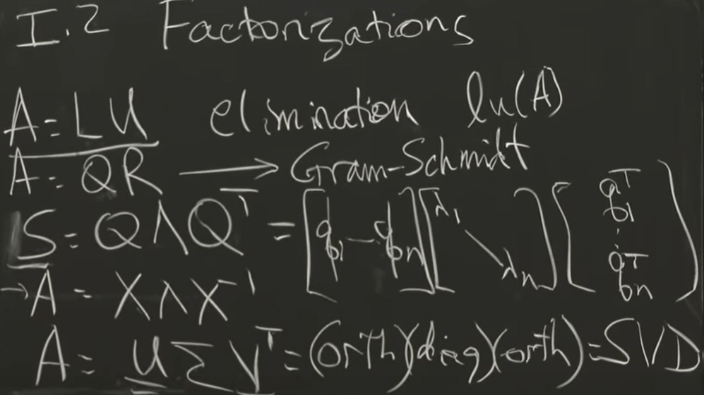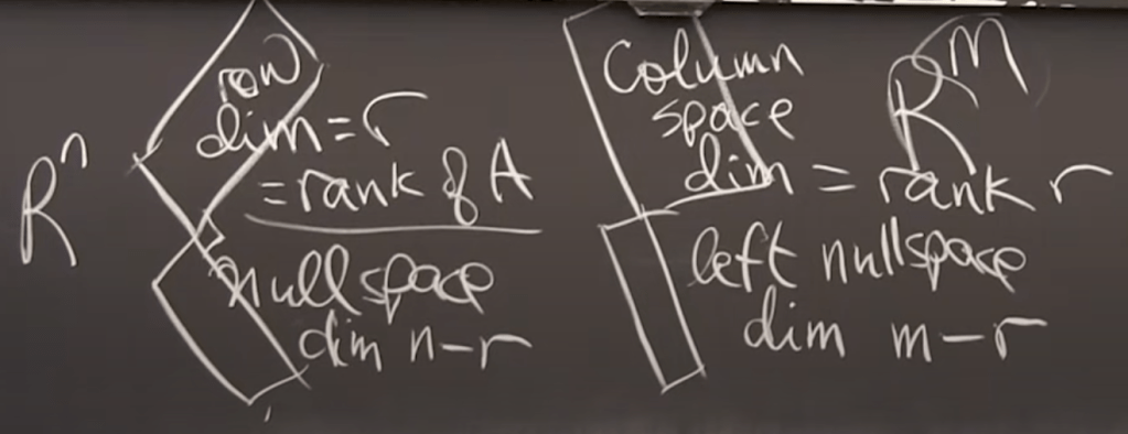 Second, Dr.Strang sure will go over the four fundamental subspaces of Matrix A that is mxn of rank r: the column space of A, column space of A transpose (row space of A), null space of A and null space of A transpose.