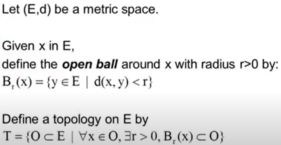 So from metric space, topology can be derived, but not necessarily other way around. If so, it is called metrizable topology. For example, trivial topology which contains only empty set and the full set is not metrizable.