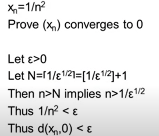 For example, Xn = 1/n2, how to prove it converges to 0?