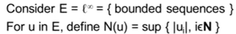 This looks quite like distance but is not distance. I gather in linear algebra, the two are regarded inter-changeable, so it’s bit confusing to topology learning stage. Now given the precise definition of norm, we found the scope is much enlarged too, for example, test if N(u) below is a norm?