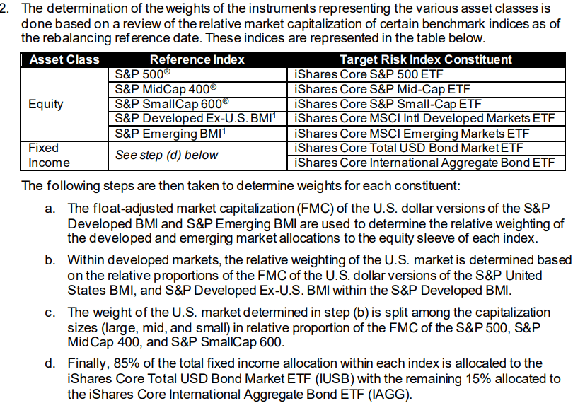 However as indexer, I do need to dive deep to see how the underlying indexes are woven. Taking AOA-US’s benchmark as example by Referencing S&P Target Risk Index Series Methodology.