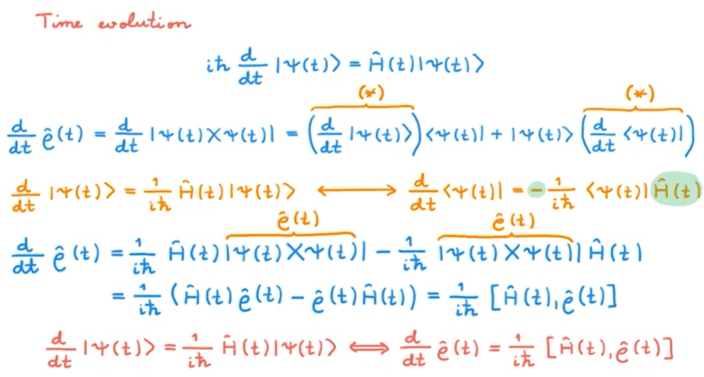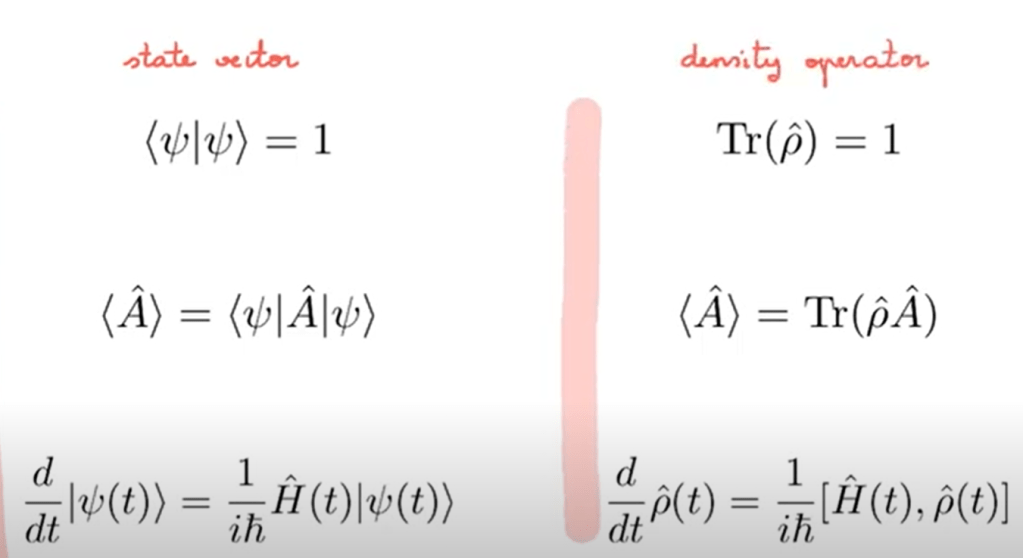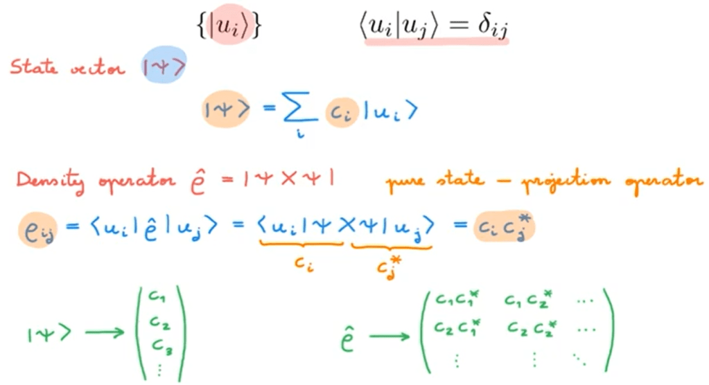 density operator is defined as the outer/projection/cross product of sai and sai. it can be thought of as another form of expressing in the right bottom equivalent to the form of left bottom “state vector”, so the following computation would be easier.