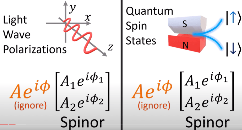 Leading to the definition of spinors either in light polarization expressed by Jones vector or Stern Gerlach experiment particles: