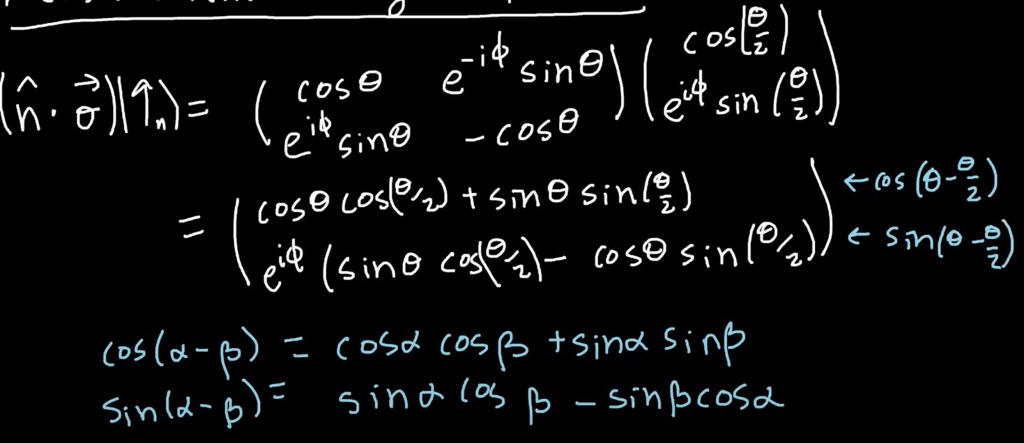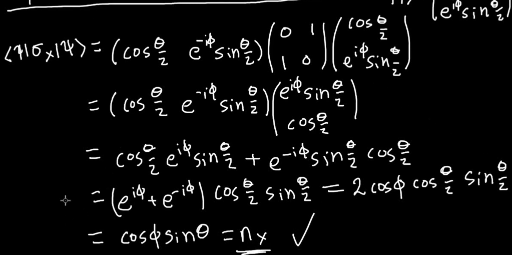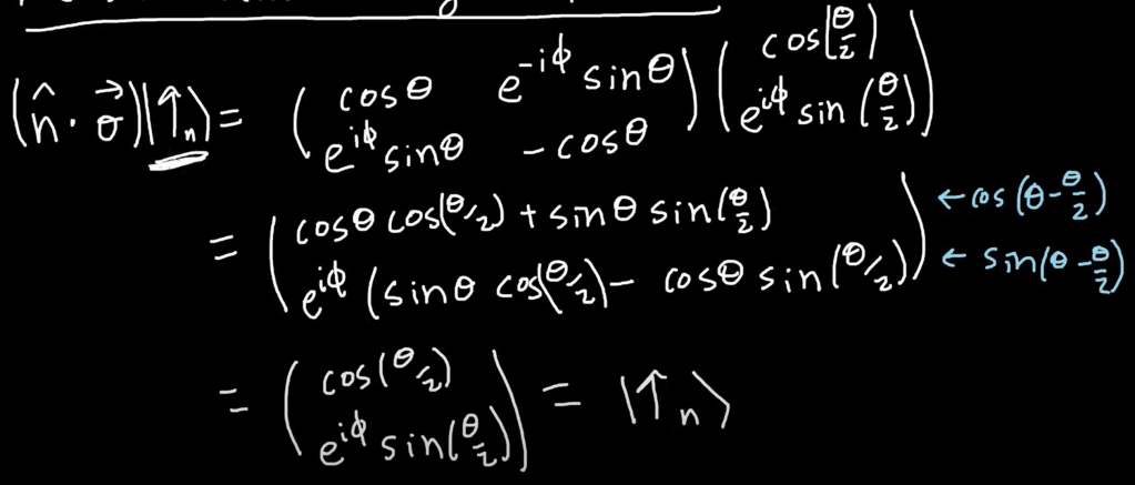 Note I didn’t get to know how Noah define upward n direction spin as cos(theta/2), eiphisin(theta/2) above, He just provided.