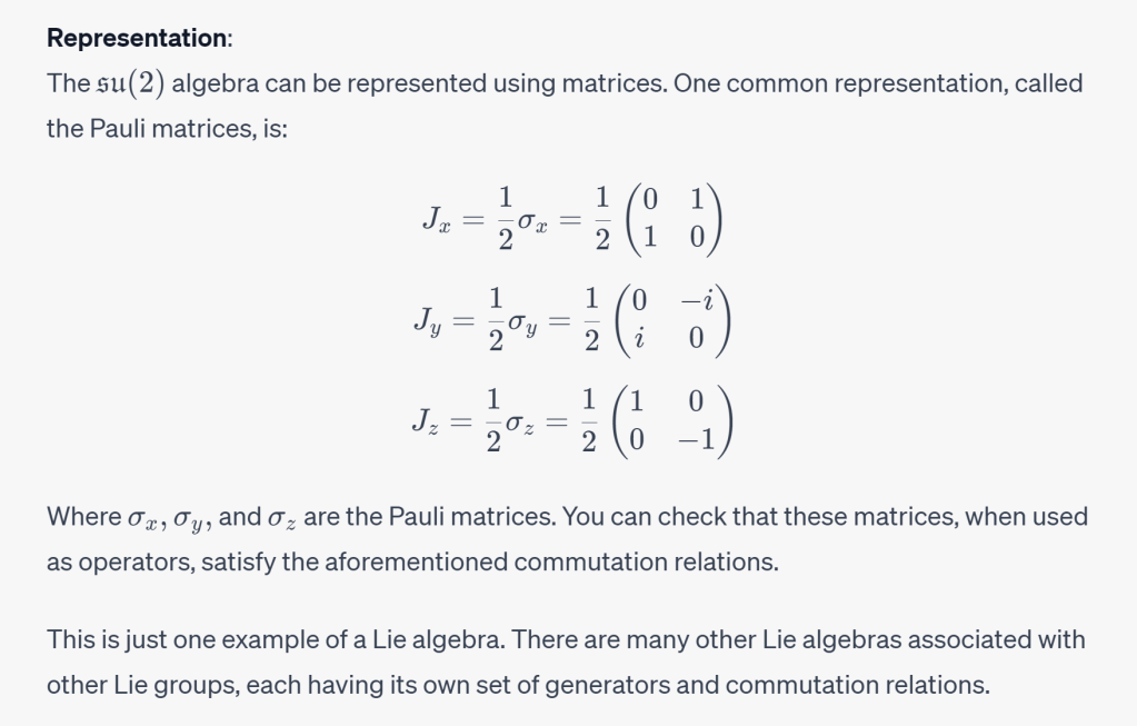- In quantum mechanics, the commutation relations between operators (like position and momentum) are reminiscent of the relations in a Lie algebra.