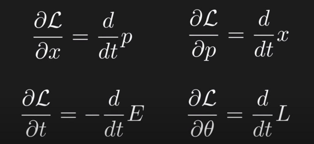 for example, looking at the first equation, we can say to change the Lagragian in terms of position, we look at the change of momentum in time, or, put in other word, momentum is the generator of spatial change. Position is the generator of momentum change. by the same reasoning, energy is the generator of time change.