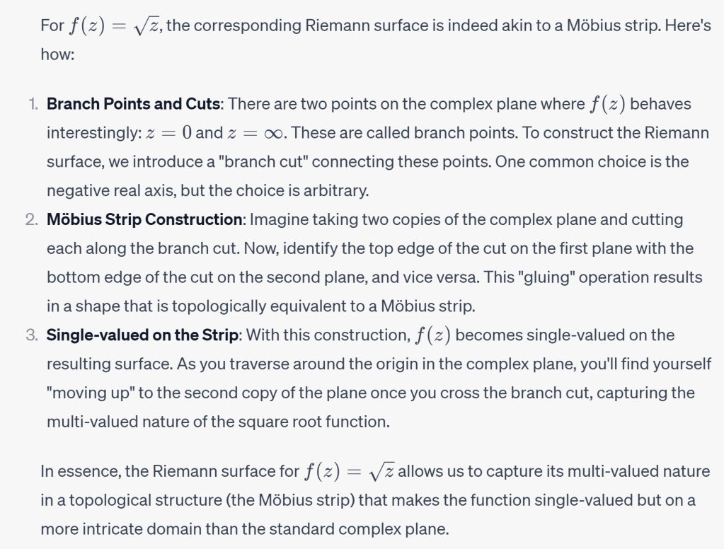 Back to basics of how Rieman surface is derived and defined? isn’t Riemann surface of f(z) = z^1/2 z is complex number exact same as morbius strip?