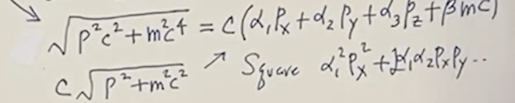 Now we move on to see the genius of Dirac in deriving Dirac Equation by taking square root of an operator delta: