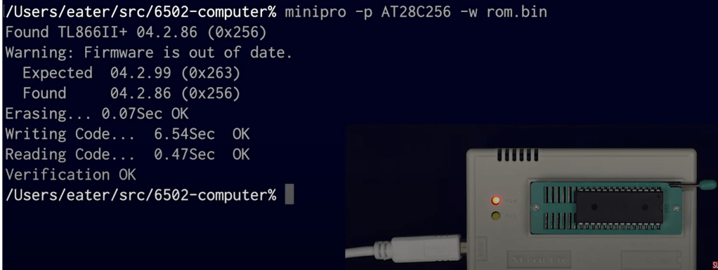 Then plug in the ROM programmer and let it read in the codes (32k eas, i.e. doing nothing NOP) and run