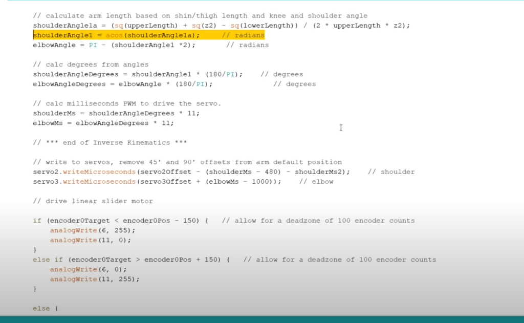 Equipped each arm part with servo, then installed Arduino UNO to program. Turn the math to move arms below into Arduino codes: