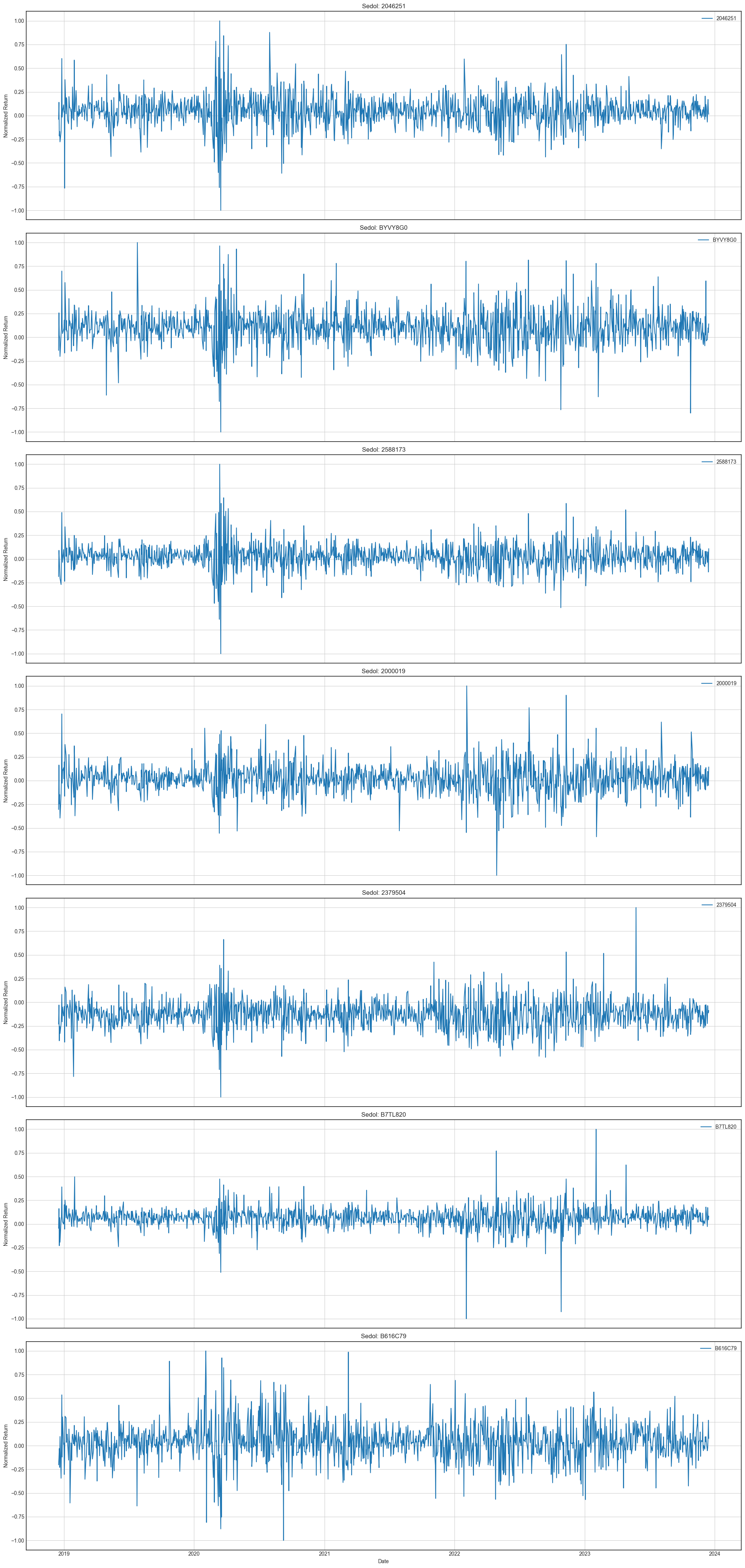 The below charts represent each stock’s daily normalized return over last five years, i.e. from 20181217 to 20231215.