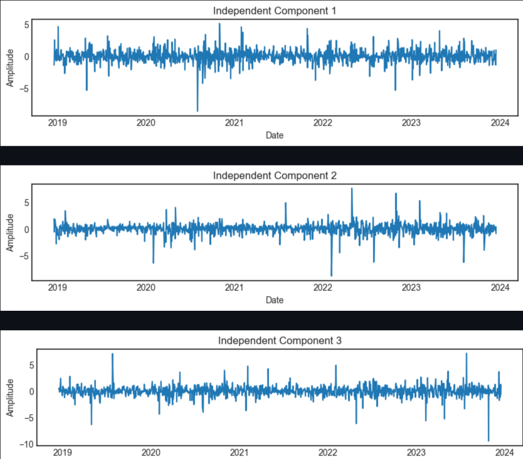 While ICA is prominently used in fields like signal processing and neuroscience (such as in EEG analysis), its application in stock market analysis is less straightforward but still quite interesting.