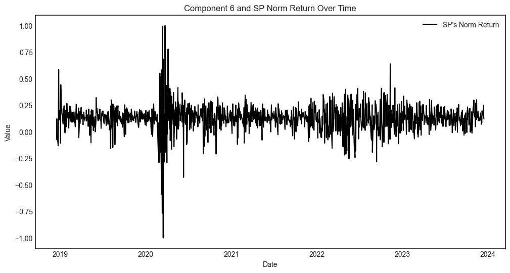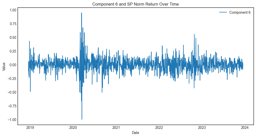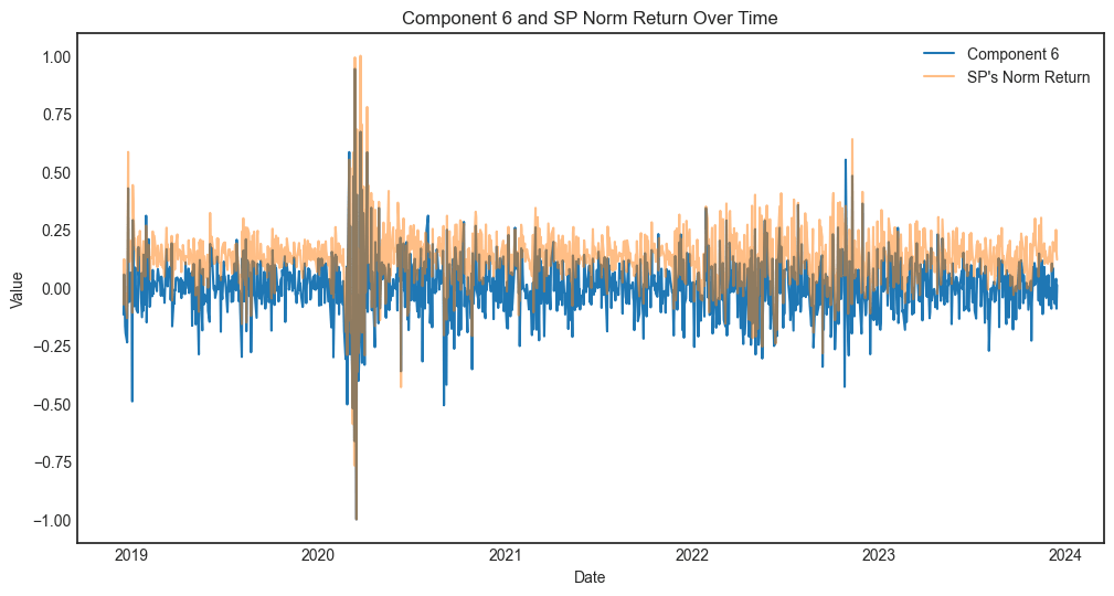 Component 6 explain almost 50% of the total variance. and the chart looks like the market signal, hence I use the S&P500 index daily normalized return to compare. It verified my guess, the two charts display similar pattern.