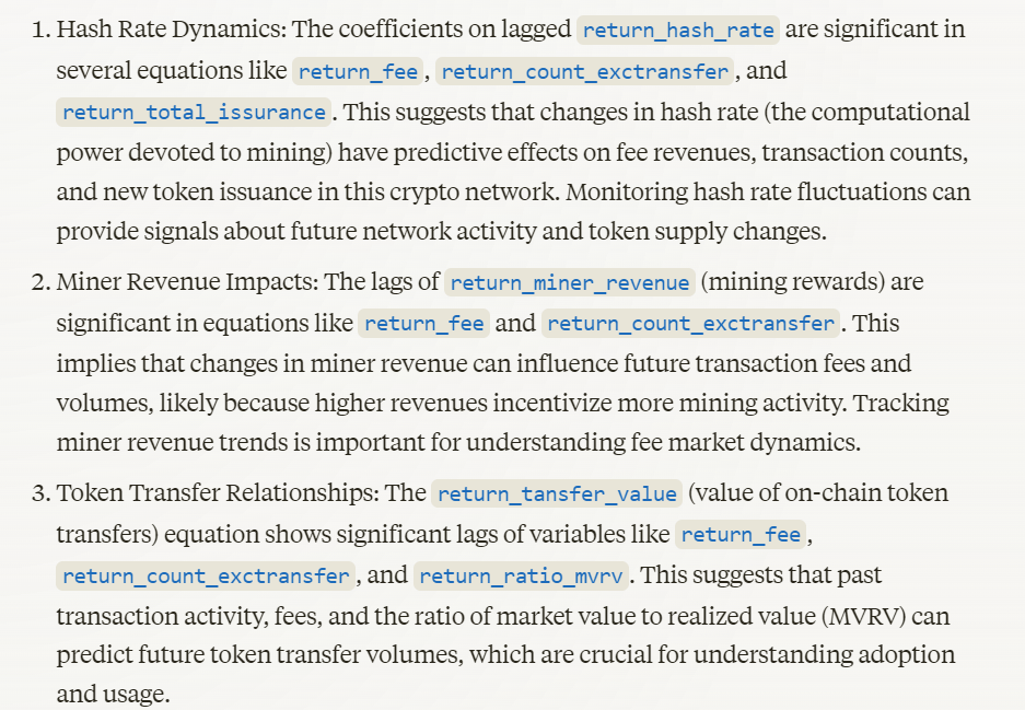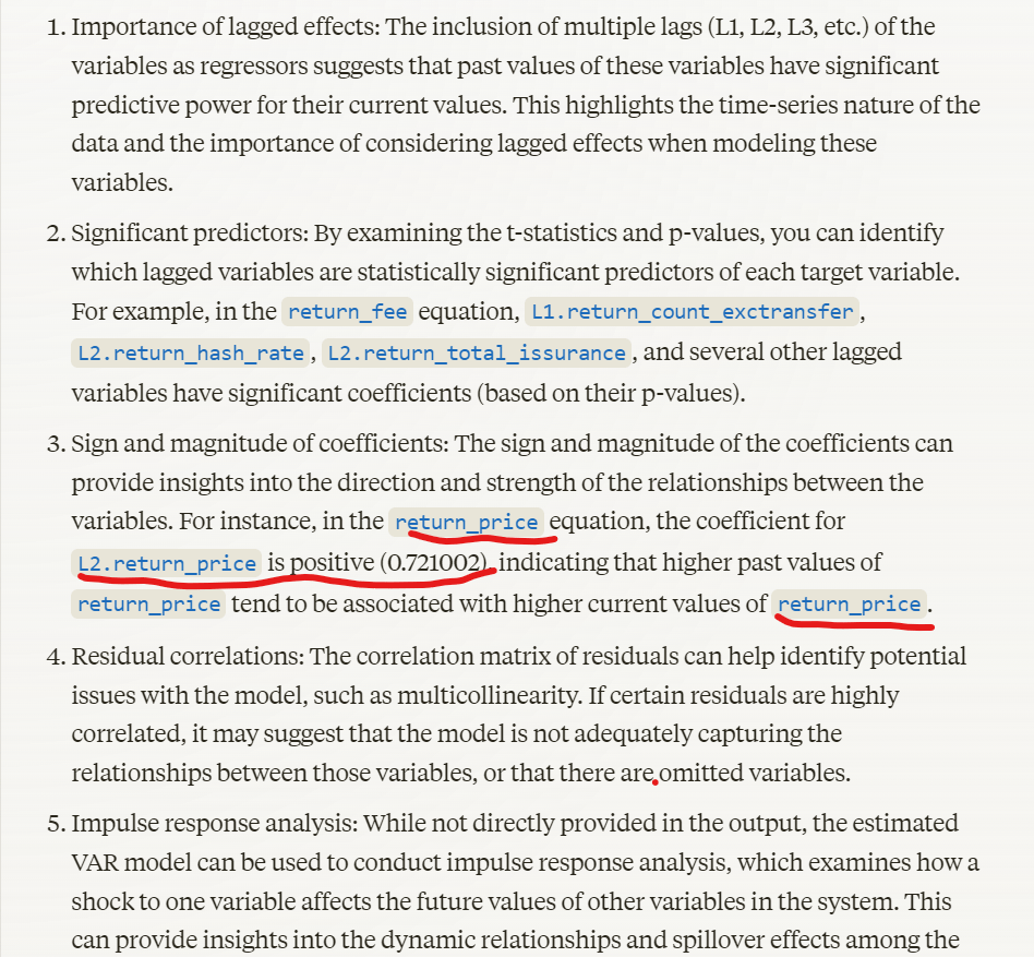 Vector Autoregressive (VAR), fed to Anthropic for deeper insight: