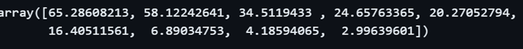 The sigma/eigen values of SVD below indicate the 10 features can be represented by 5 to 4 principle eigen vectors(liner combination)