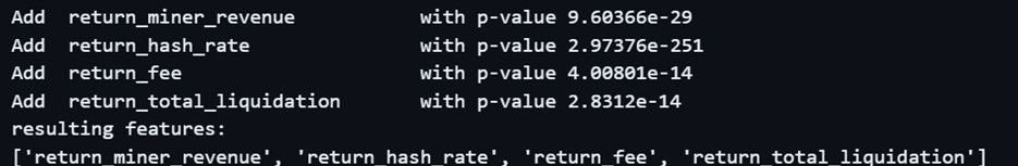 Step Wise Signal Selection, note I removed mvrv and total issuance(given hash rate is kept).