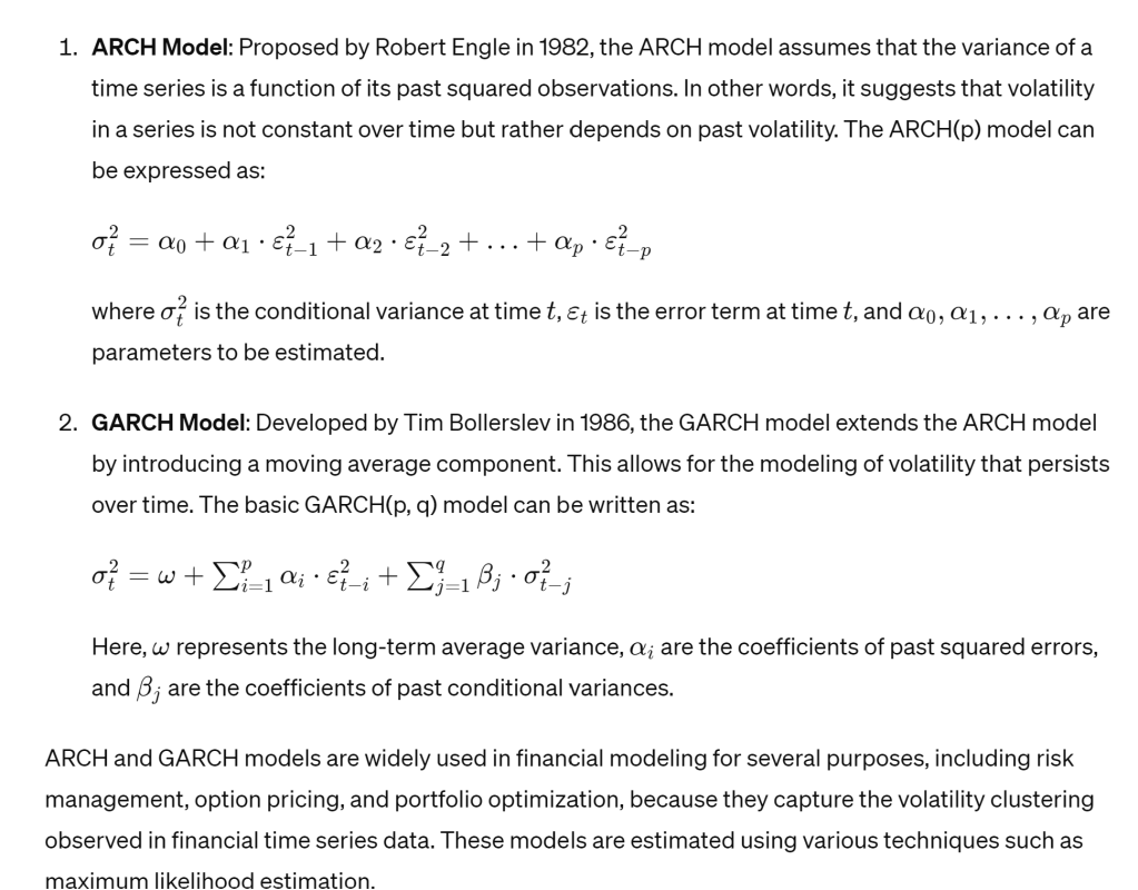 ARCH and GARCH, let chatGPT explain: