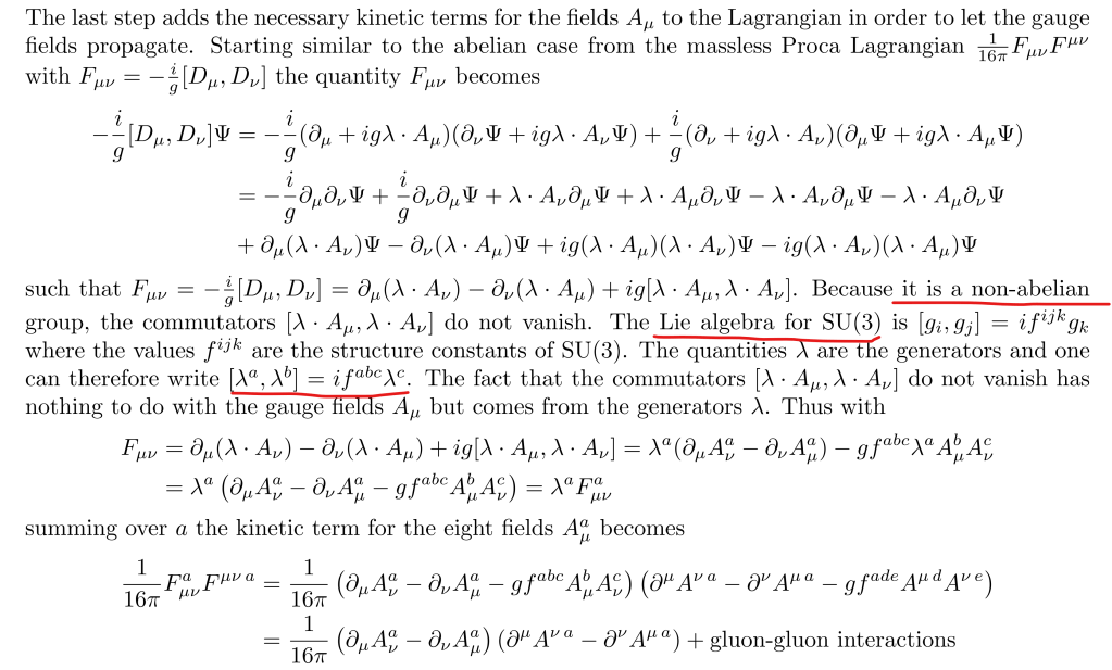 derivative Dµ = ∂µ + ig λ · Aµ instead of ∂µ similar to the case in electromagnetism one can make
