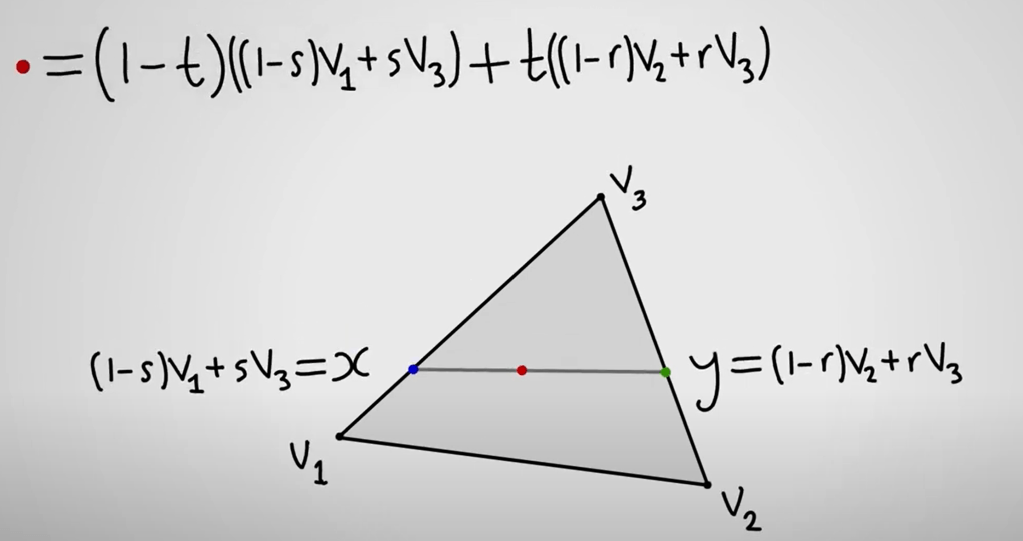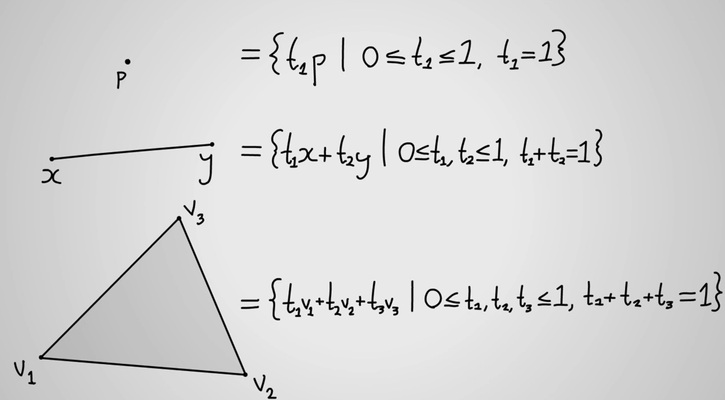 And summarize x = t1v1 + t2v2 + t3v3 satisfies t1+t2=t3 =1, 0 <= t1, t2, t3 <= 1