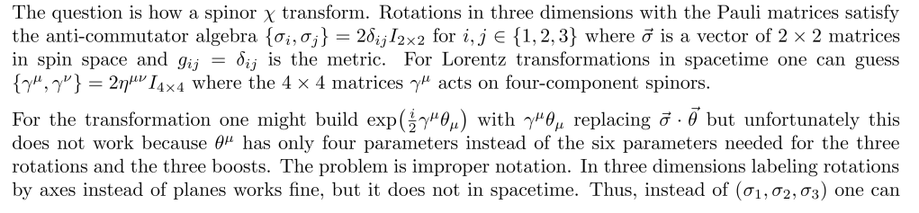 For example in deducing the Dirac Equation for spinors, Professor Alex Fournoy didn’t show how Dirac’s ingenuity in figuring out matrix as square root of momentum 2-order equation, Alex instead start from SO(3) then to SO(1,3) with Lie Algebra, when describing a rotating angle in 3D versus 4D space, the complexity of the generator’s description makes it absolutely essential to use tensors: