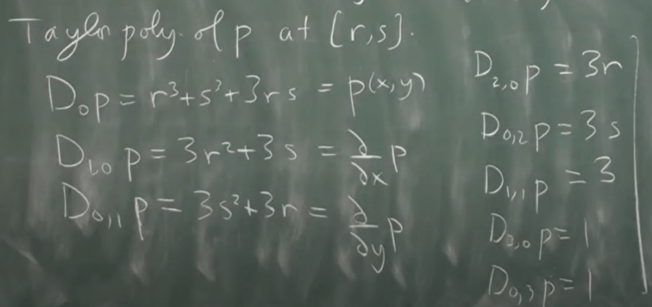 T(r, s)^(k)P = sum of all terms of total degree <= k (in x-r, y-s), when k=1, it’s the tangent plane approximating this cubic plane: r3 + s3 + 3rs + 3r^2 + 3s + 3s^2 + 3r. Moving on to tangent quadratic