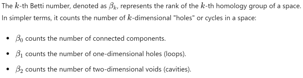 Betti numbers are used in algebraic topology to count the number of independent cycles of different dimensions in a space. They are named after the Italian mathematician Enrico Betti.