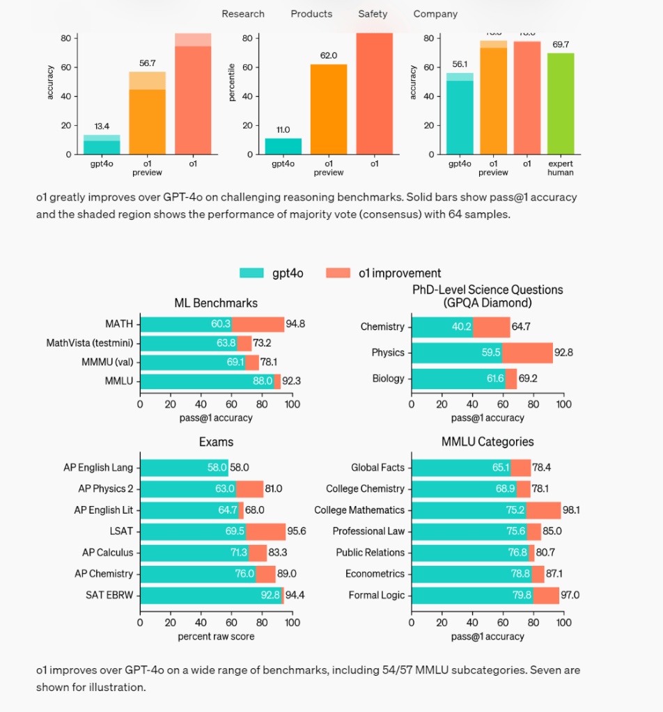 At openAI’s web page introducing this latest version, one example of decipher blows mind, but before jumping into that example, I would cite their bar charts to show how strong this model is in logic, math, physics…