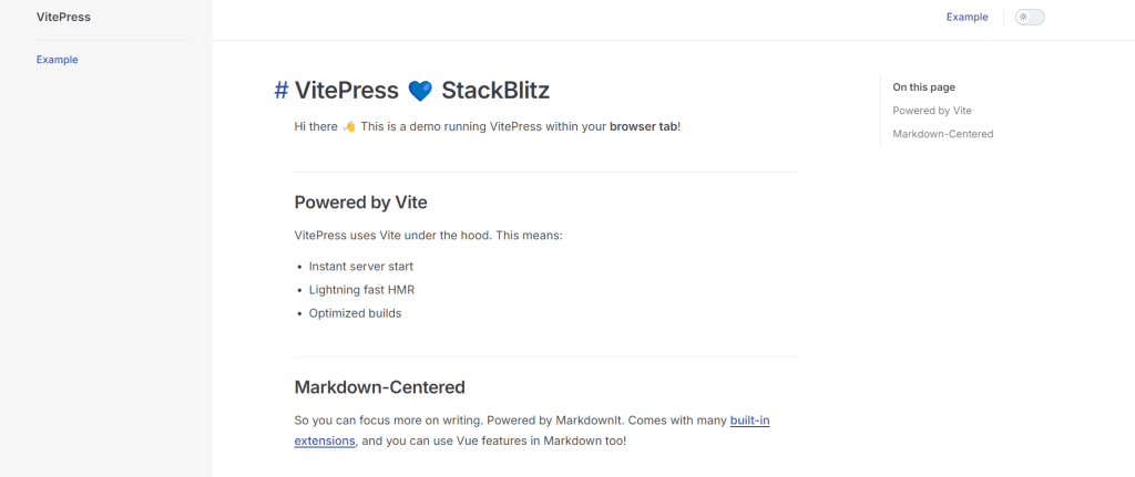 And use the boiler template of “create a docs site with Vitepress”, literally in several seconds, I was able to deploy it alive on https://storied-malasada-4cbaa5.netlify.app/, it will be supported for a week and then be automatically removed if you don’t claim it.
