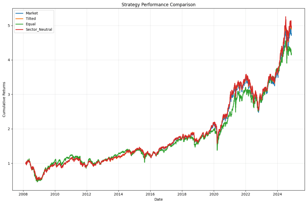 | Metric | Market | Tilted | Equal | Sector Neutral |