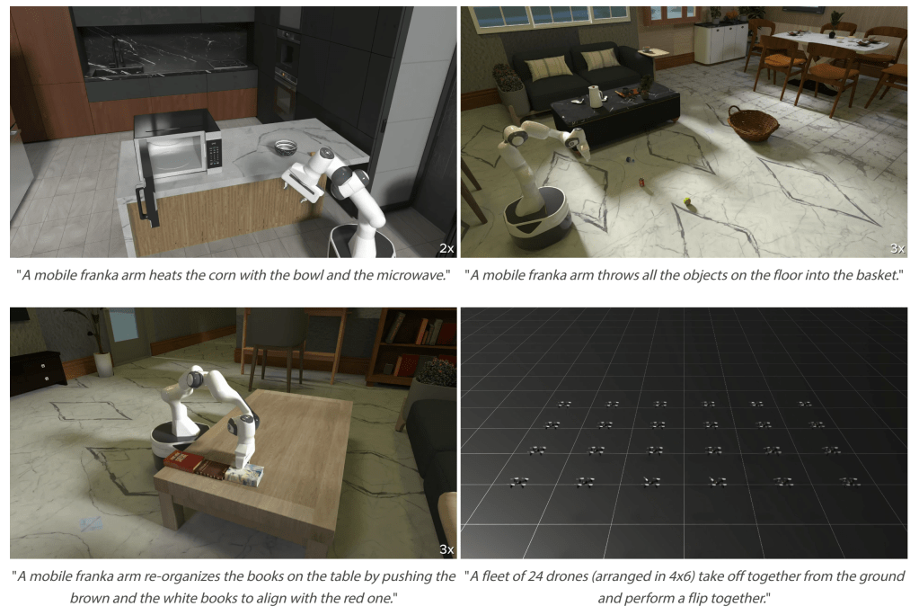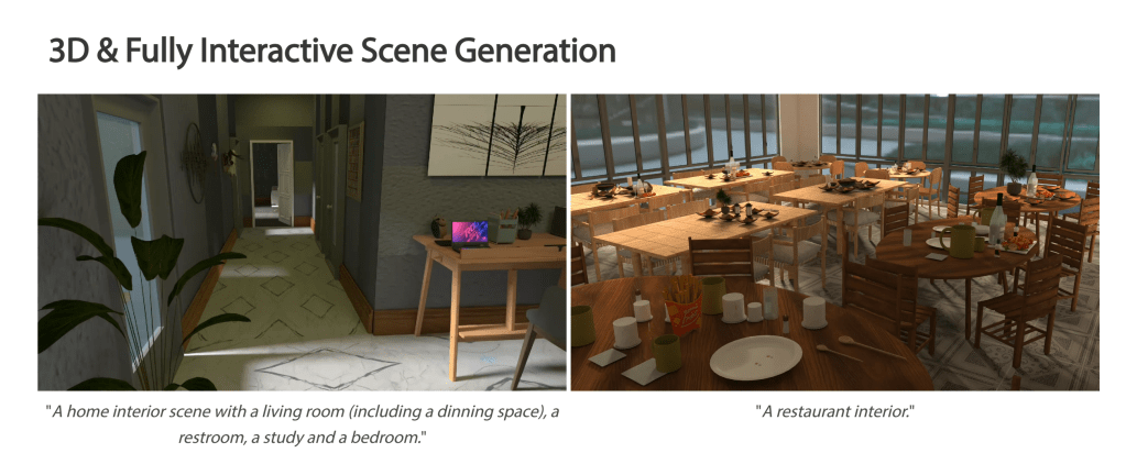 - Generative Capabilities: Can generate 3D interactive scenes and robotic policies from natural language descriptions17.