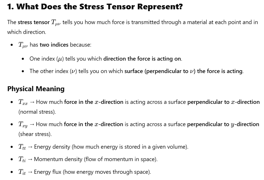 The stress tensor is also a geometric object, just like the metric tensor. But instead of defining distances and angles, it describes the distribution of forces and momentum flux in a material or spacetime.