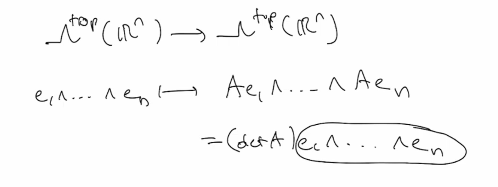 According to the original understanding of determinant as the “increased/decreased” area after the matrix transformation, it does make a lot of sense it’s function in this exterior algebra.