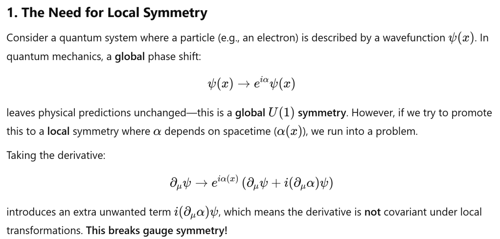 The key idea is that electromagnetism naturally emerges when we enforce local gauge symmetry on a quantum system.