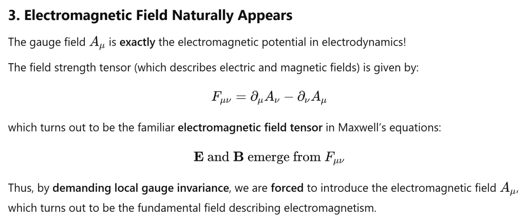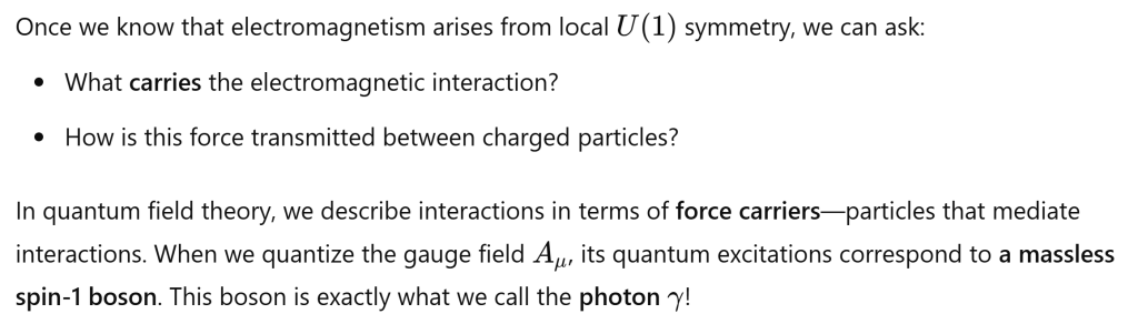 Next, why this gauge field, also is exactly the electromagnetic potential, represents the photon? The key insight is the deep connection between symmetry and forces! Respect to Emmy Noether Again!